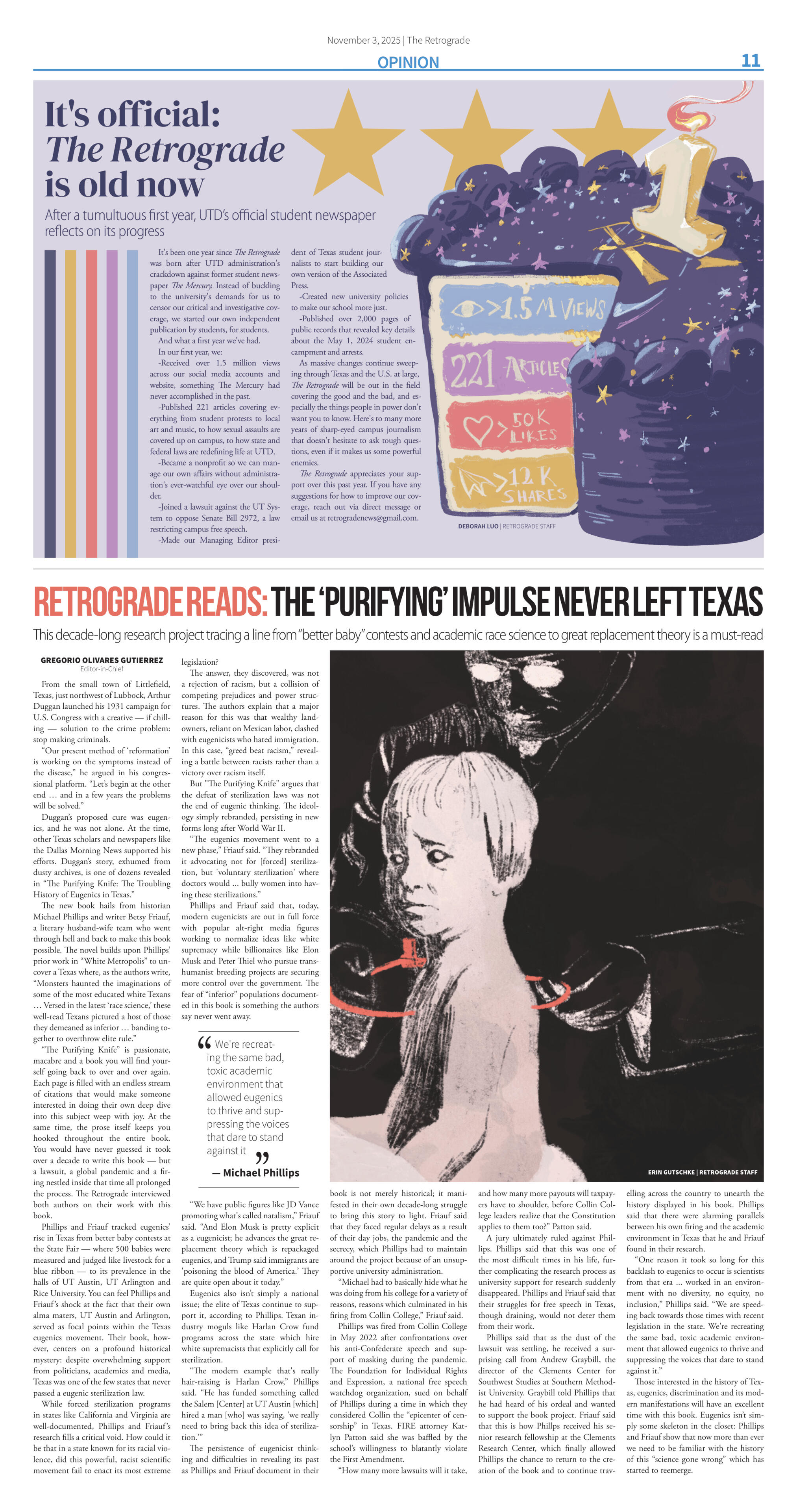 I designed graphics and created print layouts for The Retrograde. Click the images to read the corresponding stories.