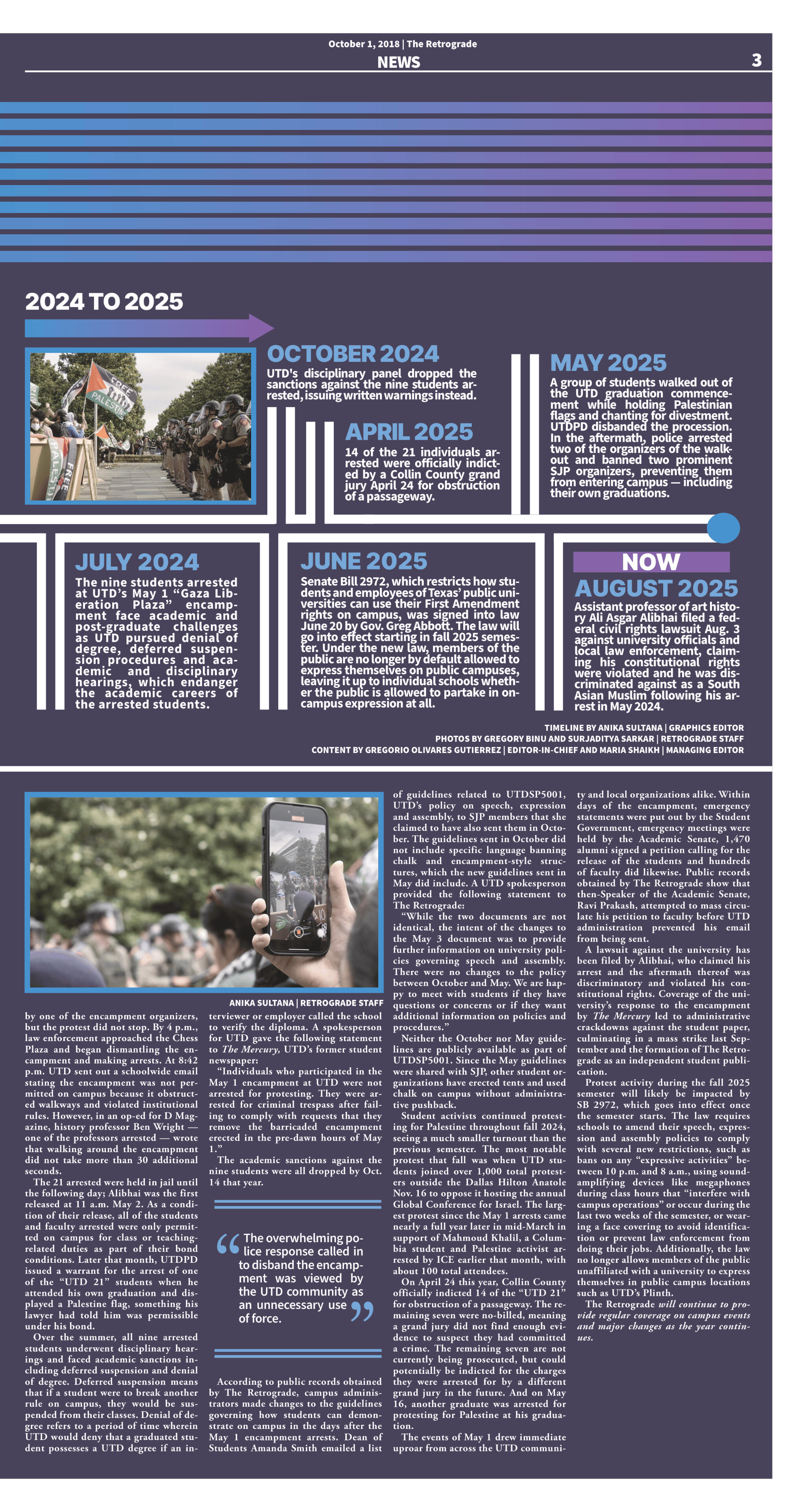 Gutierrez, G. & Crivella, T. & Kalakoti, J. & Sultana, A. (2025, July 7). As GSA Shifts to In-Person Elections, Voter Turnout Reaches New Low. The Retrograde, 1(16). retrogradenews.com/2025/07/07/as-gsa-shifts-to-in-person-elections-voter-turnout-reaches-new-low/Crivella, T. & Sultana, A. (2025, May 23). What UTD Students Should Know About Measles Entering Collin County. The Retrograde, 1(14). retrogradenews.com/2025/05/23/what-utd-students-should-know-about-measles-entering-collin-county/Gutierrez, G. & Sultana, A. (2025, April 21). AAUP Issues Letter Calling on UTD to Support International Students Amid Immigration Status Changes, Visa Revocations. The Retrograde, 1(12). retrogradenews.com/2025/04/21/aaup-issues-letter-calling-on-utd-to-support-international-students-amid-immigration-status-changes-visa-revocations/Gutierrez, G. & Sultana, A. (2025, April 7). Student Affairs Deletes Strike-Focused and Political Content from Mercury Website. The Retrograde, 1(11). retrogradenews.com/2025/04/07/student-affairs-deletes-strike-focused-and-political-content-from-mercury-website/Gutierrez, G. & Sultana, A. (2025, January 21). Winter Protests Round Out 2024 as UTD’s Most Political Year. The Retrograde, 1(6). retrogradenews.com/2025/01/21/winter-protests-round-out-2024-as-utds-most-political-year/Kalakoti, J. & Sultana, A. (2024, October 28). Opinion: UTD Must Stop Weaponizing Denial of Degree. The Retrograde, 1(3). retrogradenews.com/2024/10/28/utd-must-stop-weaponizing-denial-of-degree/Martinez, P. & Sultana, A. (2024, October 28). “Forced to Walk Through the Margins”: Graduate Students’ Exhibition Decenters Social Norms. The Retrograde, 1(3). retrogradenews.com/2024/10/28/forced-to-walk-through-the-margins-graduate-students-exhibition-decenters-social-norms/Shaikh, M. & Sultana, A. (2024, October 14). Troye Sivan and Charlie XCX Leave Fans Falling In Love — Again and Again. The Retrograde, 1(2). retrogradenews.com/2024/10/14/troye-sivan-and-charli-xcx-leave-fans-falling-in-love-again-and-again/Gutierrez, G. & Shaikh, M. & Sultana, A. (2024, September 30). Mercury in Retrograde. The Retrograde, 1(1). retrogradenews.com/2024/09/30/mercury-in-retrograde/Gutierrez, G. & Martinez, P. & Morgan, A. & Racheeti, K. & Shaikh, M. & Sultana, A. (2024, September 30). Editorial: In Support of Independent Student Press. The Retrograde, 1(1). retrogradenews.com/2024/09/30/editorial-in-support-of-independent-student-press/The Mercury